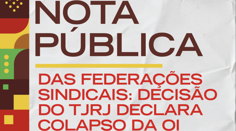 NOTA PÚBLICA DAS FEDERAÇÕES SINDICAIS: DECISÃO DO TJRJ DECLARA COLAPSO DA OI